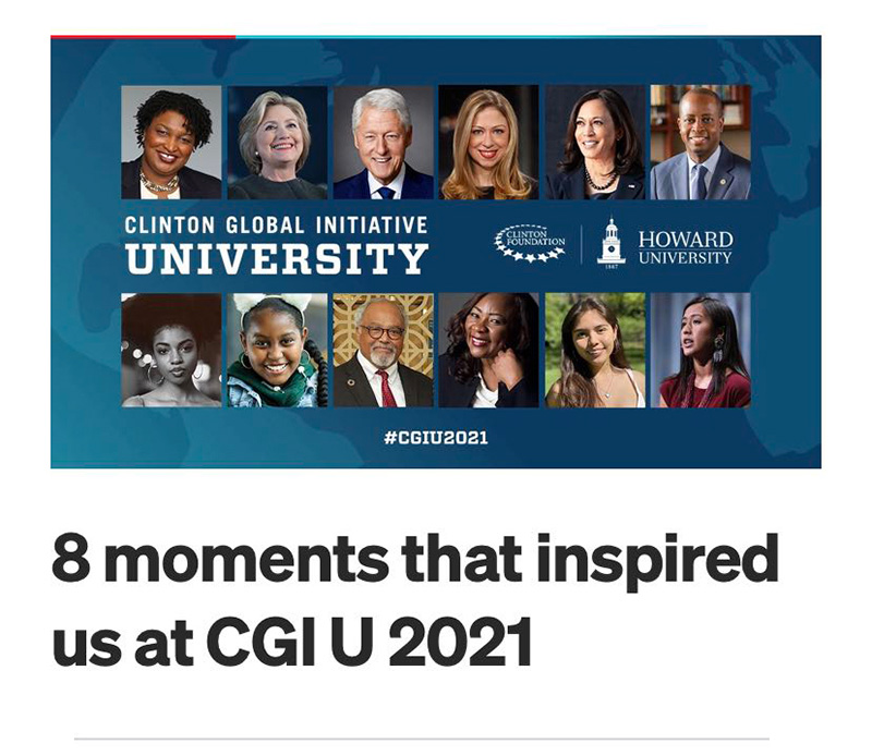 在克林頓全球倡議的成功模式的基礎上,比爾·克林頓總統(tǒng)于2007年發(fā)起了克林頓全球倡議大學(CGI U),以吸引下一代領導人在世界各地的大學校園采取行動應對全球挑戰(zhàn)。今年3月,比爾·克林頓總統(tǒng)和切爾西·克林頓召集了來自世界各地學校的600名學生領袖,與霍華德大學合作,召開了CGI U虛擬會議。2021屆CGI U大學的學生已經(jīng)制定了400多項行動承諾,以解決一系列的廣泛問題,包括新冠疫情、氣候變化、系統(tǒng)性種族主義、社會正義和食品安全等。