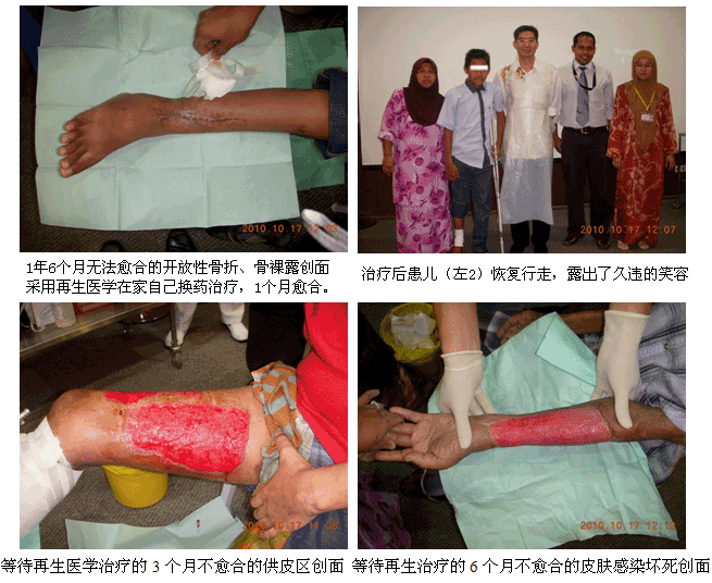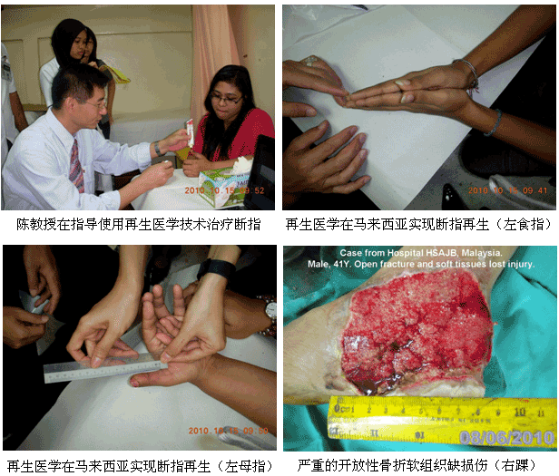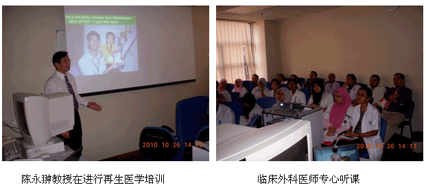自從再生醫(yī)學(xué)學(xué)術(shù)演講在今年年7月在馬來西亞Kuching舉辦的亞太估計整形大會上引起轟動和強(qiáng)烈反響后,再生醫(yī)學(xué)的學(xué)術(shù)地位和影響力在亞太地區(qū),特別是在馬來西亞得到了明顯提升。為了發(fā)揮出學(xué)術(shù)的優(yōu)勢,趁熱打鐵在馬來西亞推廣再生醫(yī)學(xué)技術(shù),2010年10月10日至29日,馬來西亞今年的第三輪醫(yī)療開發(fā)與維護(hù)工作順利展開,收效顯著。在20天的時間里,先后舉辦了州級(省級)培訓(xùn)班2期,院級培訓(xùn)班7期,培訓(xùn)了燒傷、整形、普通外科、骨科、內(nèi)科的醫(yī)師和護(hù)士580余名;對 5家老基地醫(yī)院的臨床應(yīng)用與技術(shù)規(guī)范進(jìn)行了有效的維護(hù)、推進(jìn)和提高;成功新開發(fā)了4家新的大型政府教學(xué)醫(yī)院和1家大學(xué)醫(yī)院;會診、指導(dǎo)30多例危重疑難病例的救治[燒傷7例(特重度燒傷2例),創(chuàng)傷13例,慢性潰瘍11例,皮膚病1例,等],醫(yī)療開發(fā)與維護(hù)齊頭并進(jìn)。