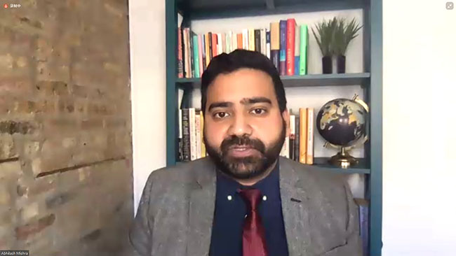 芝加哥大學(xué)徐鵬智庫(kù)主任Abhilash Mishra 博士代表徐鵬智庫(kù)及美寶國(guó)際發(fā)言,以徐鵬智庫(kù)在重鑄公眾對(duì)科學(xué)的信任方面所提供的重要策略及核心方案為基礎(chǔ)講述了新冠疫情下科學(xué)面臨的重大危機(jī)與挑戰(zhàn),講述了平等性、包容性、開放性對(duì)科學(xué)發(fā)展的重要意義,特別強(qiáng)調(diào)了跨越邊際的國(guó)際合作對(duì)科學(xué)創(chuàng)新的重要價(jià)值。