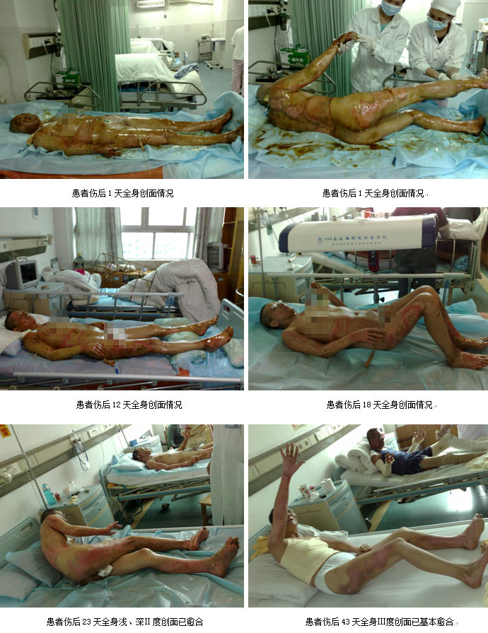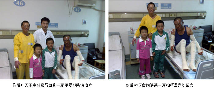 2009年2月26日7時30分,一聲巨響打破了廣州市花都區(qū)某住宅小區(qū)清晨的寧靜,住在該小區(qū)的臺胞洪某家中因煤氣泄漏突發(fā)爆炸,洪某本人以及妻子、兒子和女兒一家四口大面積嚴(yán)重?zé)齻?BR>      傷后一小時,臺胞洪某一家四口先后被急診轉(zhuǎn)入廣州市中西醫(yī)結(jié)合醫(yī)院ICU病房救治。入院診斷:患者洪某為大面積深度燒傷合并爆震傷生命垂危、兒子為大面積燒傷病情危重、妻子金某為重度燒傷、女兒為中度燒傷。該批患者入住ICU病房后,ICU的醫(yī)護(hù)人員立即為每位患者建立了有效的靜脈輸液通道,快速靜滴平衡鹽溶液,進(jìn)行有效的容量復(fù)蘇抗休克等生命支持措施,創(chuàng)面處理采用目前處于國際領(lǐng)先水平的,由我國著名生命科學(xué)家徐榮祥教授發(fā)明的燒傷皮膚原位再生復(fù)原技術(shù)。為確保對這批臺胞大面積嚴(yán)重?zé)齻颊叩某晒戎?,該院于收治病人的?dāng)日上午成立了以主管副院長劉樹華副主任醫(yī)師為組長,大外科主任張向東副主任醫(yī)師為副組長,燒傷外科、ICU等相關(guān)科室專家組成的搶救小組,負(fù)責(zé)這一家四口臺胞的救治工作。另外為了確保救治的成功,劉樹華副院長立即與中國中西醫(yī)結(jié)合學(xué)會燒傷專委會常委、北京燒傷創(chuàng)瘍研究所副所長、臨床部主任王洪生研究員電話聯(lián)系,請求其親臨該院指導(dǎo)該批臺胞的救治工作。在王洪生主任的全程臨床指導(dǎo)下,經(jīng)過廣州市中西醫(yī)結(jié)合醫(yī)院燒傷外科及全院相關(guān)科室醫(yī)護(hù)人員夜以繼日的精心治療,臺胞洪某一家四口順利渡過休克、感染關(guān),受傷最重的洪某也闖過ARDS關(guān),轉(zhuǎn)危為安,淺Ⅱ度、深Ⅱ度、淺Ⅲ度創(chuàng)面已原位再生復(fù)原(愈合)。目前臺胞洪某一家四口已順利康復(fù),洪某及妻子正在廣州市中西醫(yī)結(jié)合醫(yī)院燒傷外科進(jìn)行康復(fù)期防疤治療,兒子及女兒已正常到學(xué)校上課。臺胞洪某和其單位領(lǐng)導(dǎo)都感慨的說,全家因煤氣爆炸燒傷險些家破人亡是不幸的,但全家又受益于燒傷皮膚原位再生復(fù)原技術(shù)而轉(zhuǎn)危為安,目前闔家歡樂,真是不幸中的萬幸。