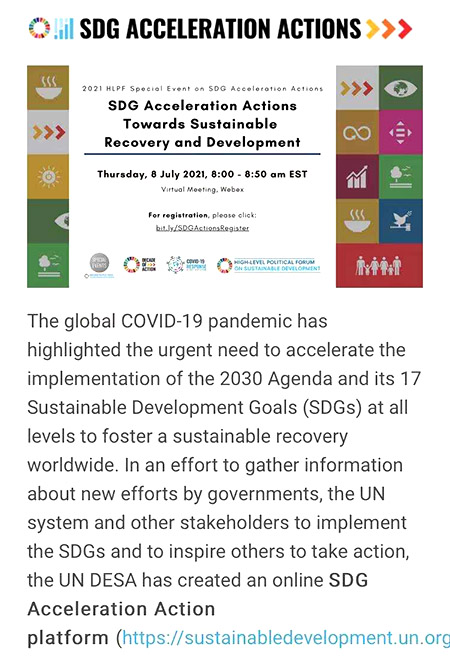 全球新冠肺炎疫情仍然十分嚴(yán)重,迫切需要加速行動全面實(shí)現(xiàn)《2030年可持續(xù)發(fā)展議程》及17個(gè)可持續(xù)發(fā)展目標(biāo),以促進(jìn)世界可持續(xù)復(fù)蘇。為了解聯(lián)合國和其他相關(guān)組織以及各國政府在履行可持續(xù)發(fā)展目標(biāo)和鼓勵采取行動方面的信息,聯(lián)合國經(jīng)濟(jì)和社會理事會創(chuàng)建了在線可持續(xù)發(fā)展目標(biāo)加速行動平臺。美寶國際提出的在中東和北非地區(qū)開展的MEBT培訓(xùn)項(xiàng)目倡議(即聯(lián)合國36733倡議)亦被納入聯(lián)合國可持續(xù)發(fā)展目標(biāo)加速行動平臺,高效踐行,以充分發(fā)揮該項(xiàng)目在新冠肺炎疫情期間對中東和北非地區(qū)的重要意義。