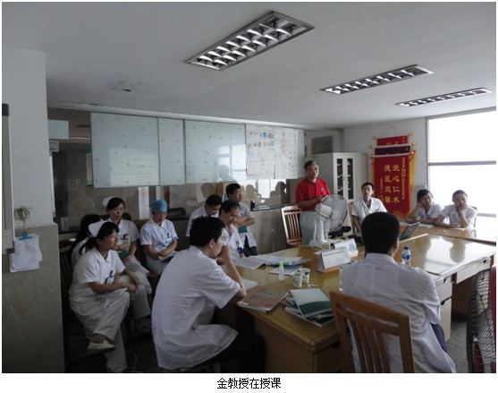 培訓(xùn)結(jié)束后,在醫(yī)務(wù)科陳科長(zhǎng)的陪同下,金主任為該院外科病區(qū)住院病人會(huì)診。并為患者進(jìn)行現(xiàn)場(chǎng)皮膚原位再生復(fù)原技術(shù)規(guī)范換藥指導(dǎo),強(qiáng)化講解了再生技術(shù)應(yīng)用特點(diǎn)和臨床規(guī)范操作的重要意義。