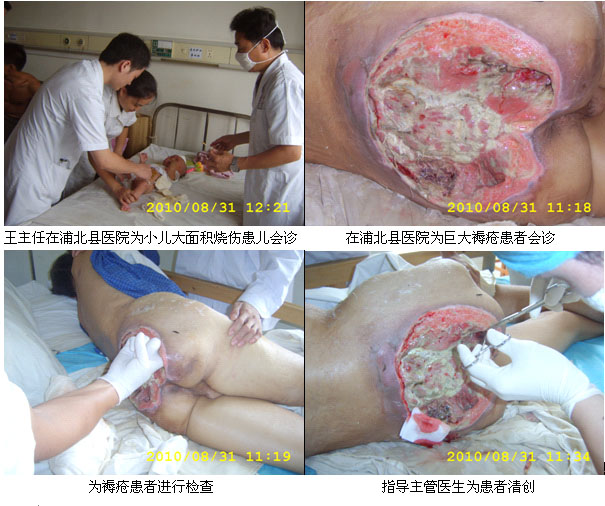 2010年8月31日,中國(guó)中西醫(yī)結(jié)合學(xué)會(huì)燒傷專(zhuān)業(yè)委員會(huì)常委、北京美寶燒傷創(chuàng)瘍研究所副所長(zhǎng)、臨床研究部主任王洪生教授在到廣西欽州市參加2010年廣西中西醫(yī)結(jié)合外科、燒傷創(chuàng)瘍、中醫(yī)藥外科學(xué)術(shù)年會(huì)期間,應(yīng)欽州市浦北縣人民醫(yī)院外四科(創(chuàng)傷骨科、燒傷科)戚海主任的邀請(qǐng),來(lái)到浦北縣人民醫(yī)院,對(duì)在該院住院的一位骶尾部巨大褥瘡的患者和一位燒傷患者的治療進(jìn)行了臨床指導(dǎo)。