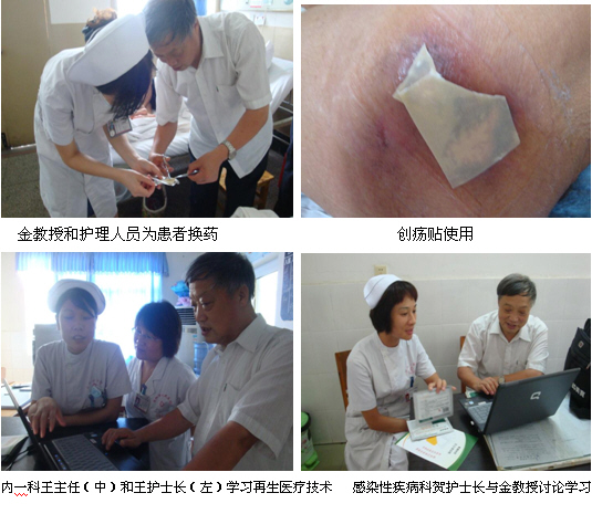 8月10日,金教授走訪了當(dāng)陽(yáng)市人民醫(yī)院,該院始建于1949年,座落在三國(guó)古戰(zhàn)場(chǎng)長(zhǎng)坂坡下,是當(dāng)陽(yáng)市集醫(yī)療、教學(xué)、科研于一體的規(guī)模最大的綜合性醫(yī)院、當(dāng)陽(yáng)市醫(yī)療護(hù)理技術(shù)指導(dǎo)中心、急救中心、國(guó)家二級(jí)甲等醫(yī)院、愛(ài)嬰醫(yī)院、國(guó)際緊急救援網(wǎng)絡(luò)醫(yī)院。醫(yī)院占地35422平方米,開(kāi)放病床328張,近8年連續(xù)被省計(jì)統(tǒng)計(jì)局授予“湖北省醫(yī)院系統(tǒng)百?gòu)?qiáng)單位”、宜昌市雙文明單位、宜昌市示范醫(yī)院、當(dāng)陽(yáng)市雙文明單位、十星級(jí)單位、花園式單位。達(dá)到了“人有專(zhuān)長(zhǎng)、科有重點(diǎn),院有特色”的現(xiàn)代化縣(市)級(jí)醫(yī)院格局。金教授走訪該院心內(nèi)科時(shí),王桂芳護(hù)士長(zhǎng)正給一患者使用美寶創(chuàng)瘍貼換藥,該患者患有椎盤(pán)壓縮性骨折,左右骶棘處潰瘍,不易翻身。王桂芳護(hù)士長(zhǎng)向金教授介紹該患治療前潰瘍面較深,在應(yīng)用創(chuàng)瘍貼治療后,目前新鮮的肉芽組織已完美呈現(xiàn)眼前,在場(chǎng)的醫(yī)生無(wú)不感嘆創(chuàng)瘍貼良好的治療效果。隨后,金教授通過(guò)幻燈片向心內(nèi)科王護(hù)士長(zhǎng)和科室王主任,感染性疾病科賀護(hù)士長(zhǎng)全面地介紹了再生醫(yī)療技術(shù)在褥瘡、創(chuàng)傷、潰瘍等創(chuàng)面的臨床應(yīng)用。王護(hù)士長(zhǎng)也就臨床中遇到的一些問(wèn)題與金教授進(jìn)行了深入地交流,并表示以后會(huì)將這項(xiàng)好技術(shù)在科室進(jìn)一步推廣應(yīng)用,造福更多患者。