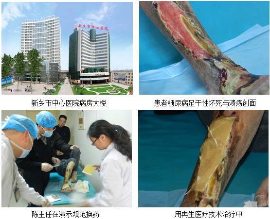 患者趙某,男,85歲,患糖尿病26年,右下肢動(dòng)脈閉塞癥造成右足干性壞死。會(huì)診后,陳主任與內(nèi)分泌科主任王林棟醫(yī)師進(jìn)行了“人體皮膚原位再生醫(yī)療技術(shù)”的交流。陳主任建議創(chuàng)面用“人體皮膚再生復(fù)原技術(shù)”治療;內(nèi)科治療則按王林棟主任原來(lái)的治療方案進(jìn)行全身治療。這樣雙方配合才能治好糖尿病足。經(jīng)過(guò)醫(yī)生、家屬同意后,陳主任做了“人體皮膚原位再生醫(yī)療技術(shù)”的規(guī)范臨床治療演示。