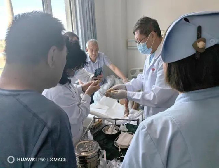 2023年6月27日,《中國(guó)燒傷創(chuàng)瘍雜志》編委、燒傷創(chuàng)瘍?cè)偕t(yī)療技術(shù)臨床專家張強(qiáng),應(yīng)銅陵市人民醫(yī)院邀請(qǐng),前往醫(yī)院會(huì)診多例壓創(chuàng)患者,對(duì)患者創(chuàng)面進(jìn)行檢查,指導(dǎo)示范換藥,并詳細(xì)講解進(jìn)一步治療方案,受到醫(yī)院領(lǐng)導(dǎo)和患者家屬的高度認(rèn)可。