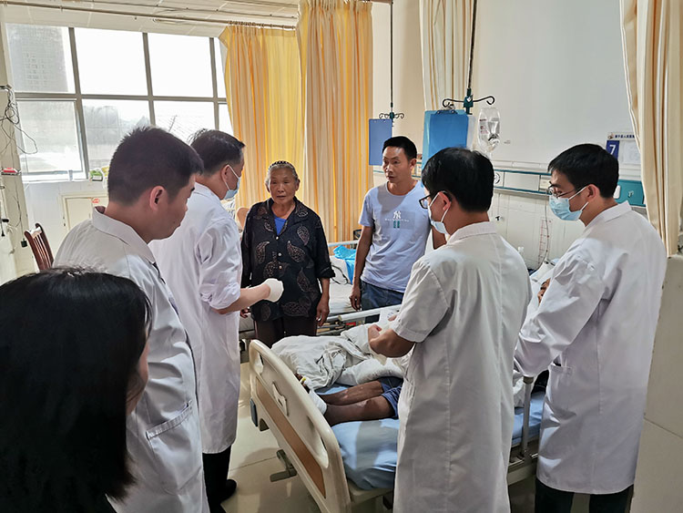 2023年6月27日,《中國(guó)燒傷創(chuàng)瘍雜志》編委、燒傷創(chuàng)瘍?cè)偕t(yī)療技術(shù)臨床專家張強(qiáng)受銅陵市第二人民醫(yī)院邀請(qǐng),前往醫(yī)院會(huì)診多例壓創(chuàng)患者,對(duì)患者創(chuàng)面進(jìn)行檢查,指導(dǎo)示范換藥,并詳細(xì)講解進(jìn)一步治療方案,受到醫(yī)院領(lǐng)導(dǎo)和患者家屬的高度認(rèn)可。