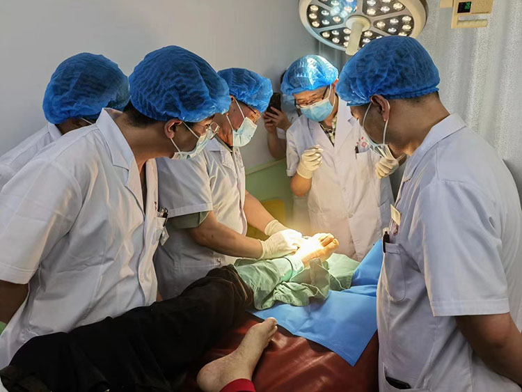 2023年6月28日,《中國(guó)燒傷創(chuàng)瘍雜志》編委、燒傷創(chuàng)瘍?cè)偕t(yī)療技術(shù)臨床專家張強(qiáng),應(yīng)邀前往鳳陽(yáng)縣人民醫(yī)院,會(huì)診多例糖尿病足患者和潰瘍患者,對(duì)患者創(chuàng)面進(jìn)行檢查,指導(dǎo)規(guī)范換藥,同蔣主任及醫(yī)生共同探討創(chuàng)面治療,針對(duì)不同病情制定個(gè)性化治療方案,此次會(huì)診活動(dòng),得到醫(yī)院和患者的好評(píng)。