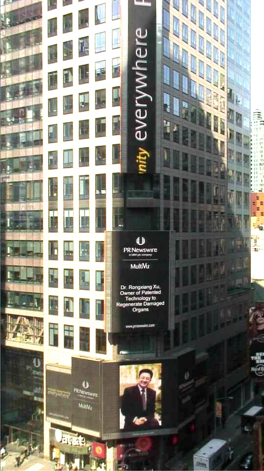 今日,國際頂級地標紐約時代廣場新聞報道美國總統(tǒng)發(fā)展“損傷器官再生”國策專利權人、人體再生復原科學發(fā)明人徐榮祥教授。