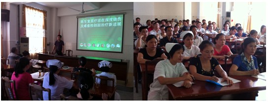 2012年6月1日下午,經(jīng)茂名市衛(wèi)生局批準(zhǔn),應(yīng)該醫(yī)院醫(yī)務(wù)科盧科長(zhǎng)邀請(qǐng),中國(guó)中西醫(yī)結(jié)合學(xué)會(huì)燒傷專業(yè)委員會(huì)常委兼秘書,北京美寶燒傷創(chuàng)瘍研究所副所長(zhǎng)、第二臨床研究部主任,《中國(guó)燒傷創(chuàng)瘍雜志》副總編輯王洪生研究員到該醫(yī)院做“再生復(fù)原療法在難愈性創(chuàng)面治療新進(jìn)展”臨床專題學(xué)術(shù)講座,參會(huì)人員有來自信宜市各級(jí)醫(yī)療單位醫(yī)護(hù)代表近100人,在學(xué)術(shù)講座中,王主任首先向與會(huì)的專家介紹了著名生命科學(xué)家、醫(yī)學(xué)家、人體再生復(fù)原科學(xué)的創(chuàng)立者、再生復(fù)原療法的發(fā)明人徐榮祥教授近年來在再生醫(yī)學(xué)領(lǐng)域所取得的重大實(shí)驗(yàn)及臨床研究成果,而后王主任結(jié)合了大量的臨床病例圖片及錄像資料,就再生復(fù)原療法在難愈性創(chuàng)瘍創(chuàng)面治療上的一種新方法,對(duì)不同深度的燒傷創(chuàng)面及各類難愈性創(chuàng)傷、潰瘍創(chuàng)面的規(guī)范化處理方法與技巧、注意事項(xiàng)等進(jìn)行了細(xì)致地講解,并強(qiáng)調(diào)創(chuàng)面處理要大膽清創(chuàng)、減壓、去除壞死組織,并保持創(chuàng)面生理的濕潤(rùn)環(huán)境,實(shí)現(xiàn)創(chuàng)面的再生復(fù)原,并建議對(duì)病人深達(dá)真皮層以下愈合后創(chuàng)面應(yīng)進(jìn)行防疤處理治療。