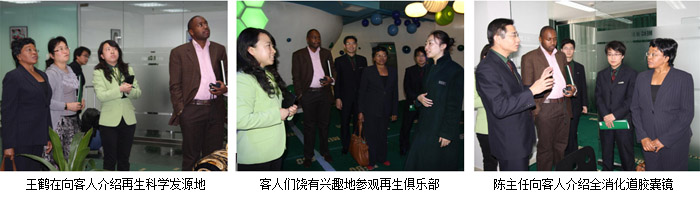 上午, Dr.Betty一行饒有興趣地參觀了人體組織器官原位再生復(fù)原俱樂(lè)部、全消化道膠囊鏡和中心實(shí)驗(yàn)室,現(xiàn)場(chǎng)聽(tīng)取了技術(shù)人員對(duì)人體組織器官原位再生復(fù)原科學(xué)技術(shù)的詳細(xì)介紹。隨后,大家來(lái)到了集團(tuán)多功能會(huì)議廳進(jìn)行了簡(jiǎn)單的商談后,負(fù)責(zé)非洲區(qū)域經(jīng)營(yíng)的國(guó)際部的王晨光向客人們介紹了美寶國(guó)際集團(tuán)的整體情況,接著由組織器官再生醫(yī)學(xué)專(zhuān)家陳永翀主任介紹人體組織器官原位再生復(fù)原科學(xué)技術(shù)。在講解過(guò)程中,陳主任采用圖文并茂的方式,展示了燒傷皮膚原位再生復(fù)原技術(shù)的臨床治療效果和人體各個(gè)組織器官原位再生復(fù)原在老齡人和最晚期癌癥患者身上所取得的驚人結(jié)果,同時(shí)深入淺出的講解人體組織器官原位再生復(fù)原技術(shù)的科學(xué)理論。Dr. Betty 院長(zhǎng)一行深深地被再生醫(yī)學(xué)科學(xué)的研究成果所震驚,也被神奇的臨床治療效果所折服,并表示希望盡快引進(jìn)該項(xiàng)先進(jìn)技術(shù)的強(qiáng)烈意愿