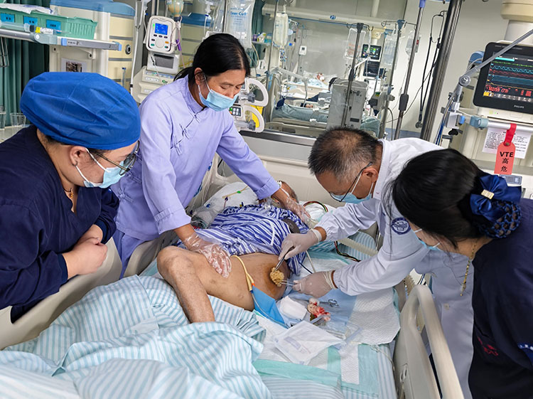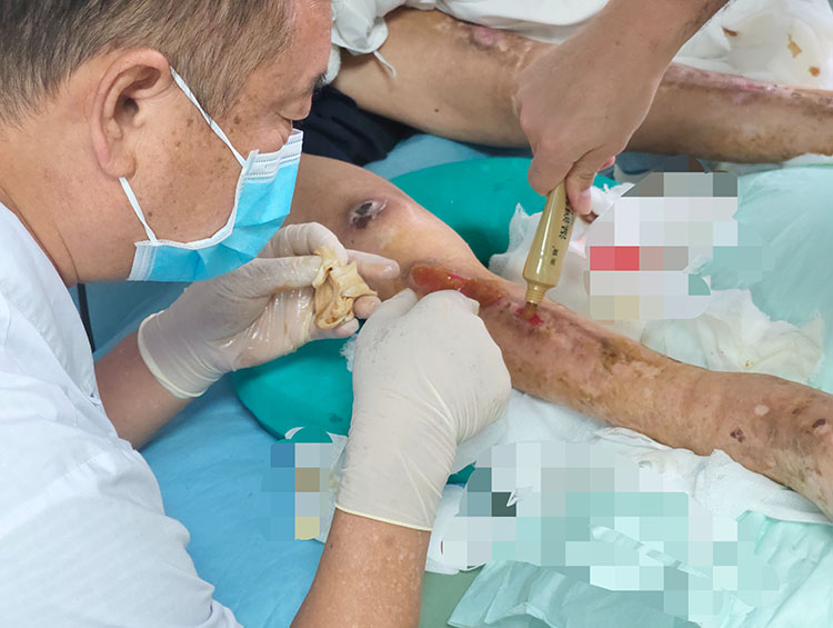 2025年9月25日,《中國燒傷創(chuàng)瘍雜志》常務(wù)編委、燒傷創(chuàng)瘍再生醫(yī)療技術(shù)臨床專家趙瑞慶在朔州市大醫(yī)院會診了四例慢性創(chuàng)面患者。其中1例4級糖足,其余3例冠脈搭橋術(shù)后下肢取血管處感染,足部外傷感染等均為VSD治療患者,討論環(huán)節(jié)趙教授強調(diào)了糖足規(guī)范,程序操作的要求以及簡易負(fù)壓方法壓力管理的重要性。