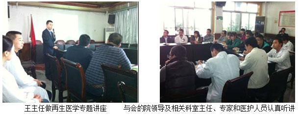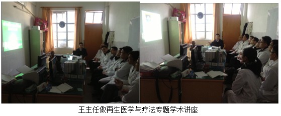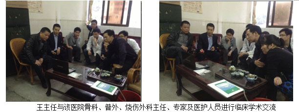 學(xué)術(shù)講座于當(dāng)日下午下午4:00在該醫(yī)院的外科主任辦公室召開。該醫(yī)院的骨外科何平主任、普外科劉主任及其醫(yī)院各外科系統(tǒng)負(fù)責(zé)人及醫(yī)護(hù)人員10余人參加了講座會議。會中,王主任結(jié)合了大量的臨床病例圖片,主要針對燒傷、糖尿病足、褥瘡等各類難愈性創(chuàng)傷、潰瘍創(chuàng)面的規(guī)范化處理方法與技巧、注意事項等進(jìn)行了細(xì)致地講解。會議持續(xù)到下午近六點,何主任表示再生療法在臨床上相對于他們來說,是一個全新的治療方法,他們都感到非常的信服,希望王主任以后再臨床上能多多的指導(dǎo),以更好的造福于患者。