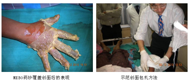 A、試驗組(MEBO組)病例創(chuàng)面處理操作示范: