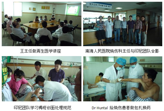 7月6日,在王主任的帶領(lǐng)下,印尼團(tuán)隊(duì)又趕赴廣東省南海人民醫(yī)院進(jìn)行創(chuàng)瘍病例的參觀學(xué)習(xí)。該家醫(yī)院也是再生醫(yī)學(xué)技術(shù)的基地醫(yī)院,應(yīng)用在燒傷及創(chuàng)瘍方面的治療廣泛。在醫(yī)院燒傷科李民主任的帶領(lǐng)下,印尼醫(yī)生們參觀了用再生療法治療多發(fā)性、深度褥瘡病人的換藥規(guī)程。隨后,王主任向印尼醫(yī)生及該科室醫(yī)護(hù)人員進(jìn)行了系統(tǒng)的再生醫(yī)學(xué)講座,使醫(yī)生們獲益匪淺。
