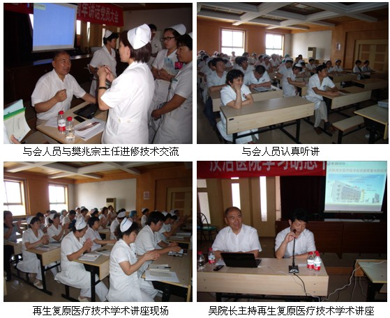 2011年8月3日,天津市漢沽區(qū)醫(yī)院特邀請了中國中西醫(yī)結(jié)合學(xué)會燒傷專業(yè)委員會、北京美寶燒傷創(chuàng)瘍研究所專家樊兆宗主任為該醫(yī)院骨傷科、外科、內(nèi)科、婦產(chǎn)科、感染科、護(hù)理部等17個科室共90名醫(yī)務(wù)人員進(jìn)行學(xué)術(shù)講座。吳院長主持了關(guān)于“人體再生復(fù)原醫(yī)療技術(shù)在多學(xué)科臨床應(yīng)用”學(xué)術(shù)講座的開辦儀式,隨后樊教授向大家介紹了徐教授發(fā)明創(chuàng)建的“人體再生復(fù)原醫(yī)療技術(shù)”及其“再生系列產(chǎn)品”的功能,并利用大量的臨床圖片資料和國內(nèi)、外臨床應(yīng)用再生復(fù)原醫(yī)療技術(shù)治療的真實(shí)病例,詳細(xì)地向大家講解了人體再生復(fù)原醫(yī)療技術(shù)治療各種難愈性創(chuàng)面、斷指再生的機(jī)理,對于各種燒傷的治療也做了重點(diǎn)介紹,另外還介紹了徐教授創(chuàng)立的人體再生復(fù)原醫(yī)療技術(shù)在各學(xué)科的應(yīng)用和研究,及各種創(chuàng)面?zhèn)囊?guī)范換藥流程、處理方法、注意事項(xiàng)及美寶產(chǎn)品在臨床應(yīng)用的療效。樊教授還對與會的醫(yī)生提出的問題給予了解答。此次學(xué)術(shù)講座深受醫(yī)務(wù)人員的歡迎,使醫(yī)院醫(yī)生對再生醫(yī)療技術(shù)有了更深刻地認(rèn)識,提高了醫(yī)生的醫(yī)療技術(shù)和治療水平,解決了醫(yī)生臨床遇到的難題。大家表示希望以后有更多機(jī)會接受再生復(fù)原醫(yī)療技術(shù)的專業(yè)培訓(xùn),更好地服務(wù)于更多患者。