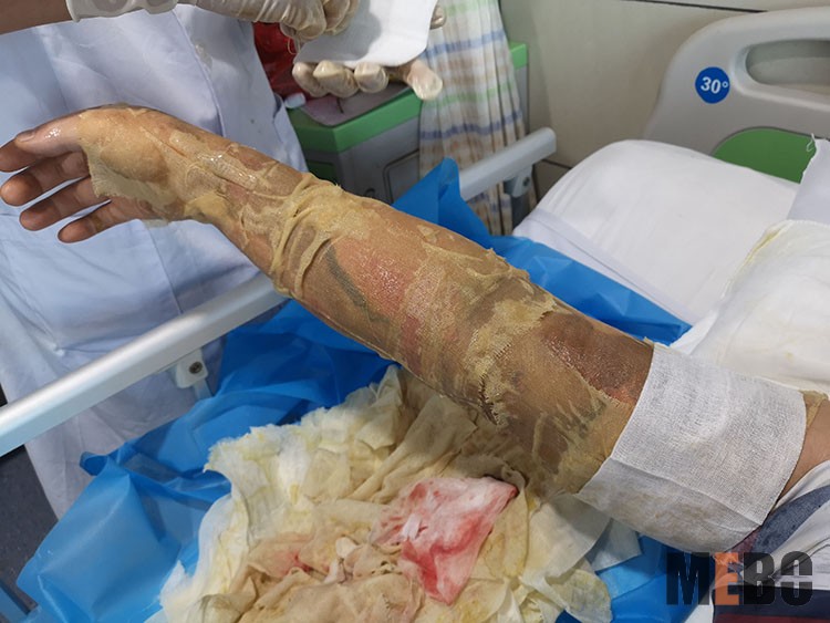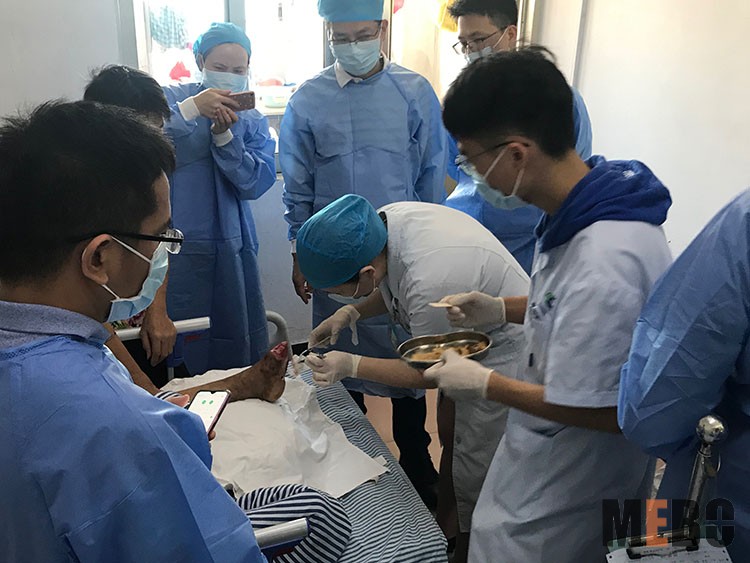 9月24日,應(yīng)湘陰縣人民醫(yī)院創(chuàng)口科室邀請,北京榮祥再生醫(yī)學(xué)研究所副所長、《中國燒傷創(chuàng)瘍雜志》編委金黨軍來到醫(yī)院會診燒傷患者,規(guī)范再生醫(yī)療技術(shù)換藥方法??剖依枳o士長陪同會診換藥。相比傳統(tǒng)療法,再生醫(yī)療技術(shù)在濕潤環(huán)境下進行原位修復(fù)再生,痛苦小,愈后少疤痕甚至無疤痕,大大提高了燒傷患者的生活質(zhì)量。