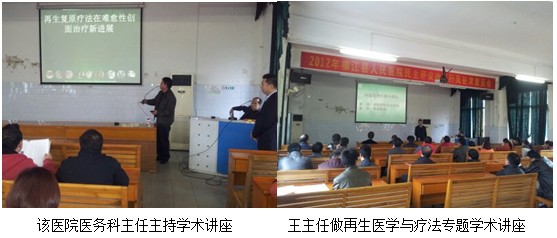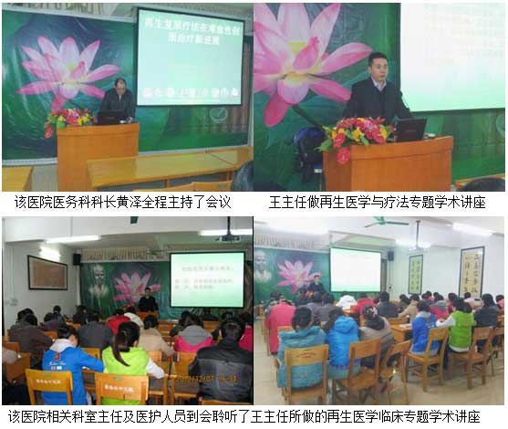 2012年12月6日,王主任應(yīng)邀到廣西水電醫(yī)院進(jìn)行 “再生療法在燒傷、難愈性創(chuàng)瘍創(chuàng)面治療新進(jìn)展”專題臨床學(xué)術(shù)講座。該醫(yī)院原稱廣西水電工程局職工醫(yī)院,是隸屬于廣西水電工程局的一所企業(yè)辦綜合醫(yī)院,創(chuàng)建于1958年的春天(廣西橫縣西津電站)。四十多年來(lái),它隨著廣西水電的建設(shè)發(fā)展,輾轉(zhuǎn)奔波于廣西各個(gè)水電施工工地上。1975年建設(shè)大化電站時(shí),定址大化至今。醫(yī)院占地面積25畝 ,建筑面積 11351平方米 。床位定編145張。有職工155人,衛(wèi)技人員118人,其中副高級(jí)職稱8人,中級(jí)職稱56人。