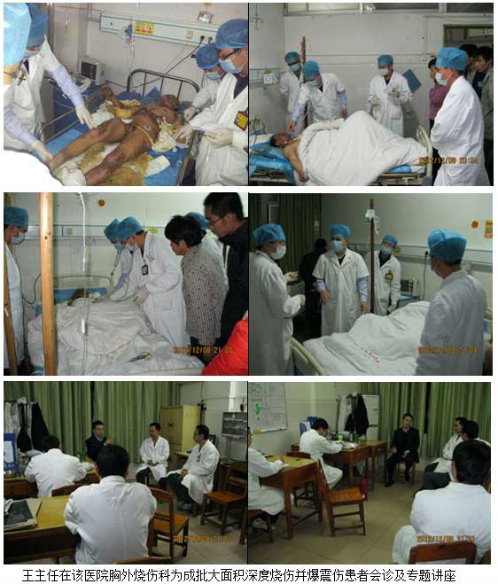 2012年12月8日早上,廣西貴港市平南縣人民醫(yī)院急診收治一批因大型氣罐爆炸致大面積深度燒沖復(fù)合傷(燒傷并爆震傷)患者,當(dāng)日上午該醫(yī)院主管副院長(zhǎng)兼胸外燒傷科主任臧德源緊急邀請(qǐng)王主任到該醫(yī)院為成批大面積深度燒傷合并爆震傷患者會(huì)診。該醫(yī)院創(chuàng)建于1935年,是一所集醫(yī)療、科研、教學(xué)、預(yù)防、保健、康復(fù)和社區(qū)衛(wèi)生服務(wù)于一體的綜合性縣(市)級(jí)醫(yī)院,是平南縣醫(yī)療業(yè)務(wù)技術(shù)指導(dǎo)中心,擔(dān)負(fù)著全縣130多萬(wàn)人民的醫(yī)療保健任務(wù)。醫(yī)院設(shè)床位390張,年門急診量近36萬(wàn)人次,住院病人1.6萬(wàn)人次.現(xiàn)有職工624人,有碩士研究生4人,高級(jí)職稱14人,中級(jí)職稱221人。