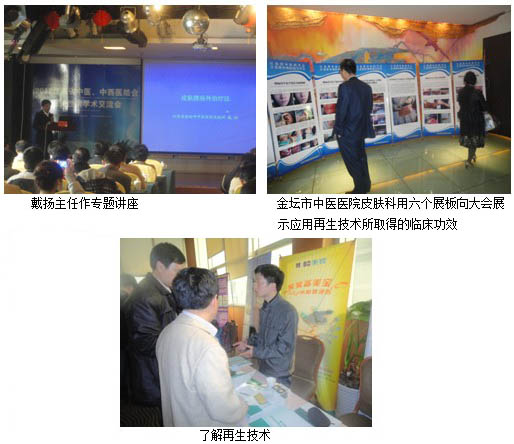 中國醫(yī)學科學院皮膚病研究所張懷亮教授、方方教授,江蘇省中醫(yī)院皮膚科閔仲生教授、魏躍鋼教授,江蘇省人民醫(yī)院皮膚科駱丹教授,東南大學中大醫(yī)院皮膚科王飛教授,南通大學附屬醫(yī)院皮膚科曹雙林教授,金壇市中醫(yī)醫(yī)院皮膚科戴揚主任等應邀作專題講座。戴揚主任是江蘇省中醫(yī)學會皮膚科分會副主任委員兼皮膚創(chuàng)瘍學組組長,他以豐富的臨床經驗,重點介紹了如何應用再生技術治療皮膚潰瘍,并展示了大量功效圖例,再次得到了與會教授、專家及學者們的高度重視。