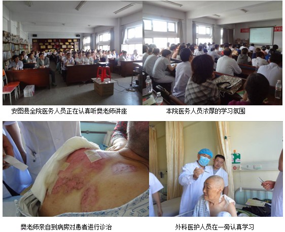 安圖縣醫(yī)院是一所集醫(yī)療、教學(xué)、康復(fù)為一體安圖縣境內(nèi)最大的綜合性二級(jí)甲等醫(yī)院,全院206名醫(yī)護(hù)人員,醫(yī)院設(shè)有15個(gè)臨床科室,7個(gè)醫(yī)技科室和專家門診,設(shè)有200多張病床。2012年7月4日,安圖縣醫(yī)院為了更深入的掌握“皮膚原位再生復(fù)原技術(shù)”規(guī)范應(yīng)用和最新進(jìn)展,特邀中國(guó)中西醫(yī)結(jié)合學(xué)會(huì)燒傷專業(yè)委員會(huì)委員樊兆宗教授進(jìn)行專題學(xué)術(shù)報(bào)告。