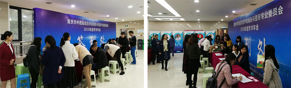 早上7點30分,會場外簽到處前來報道的醫(yī)護人員絡(luò)繹不絕,好生熱鬧,工作人員和前來簽到的參會代表都忙得不可開交,截至到大會開始前,前來簽到的人員就有重慶醫(yī)科大學附屬第一醫(yī)院、重慶醫(yī)科大學附屬第二醫(yī)院、重慶醫(yī)科大學附屬永川醫(yī)院、陸軍軍醫(yī)大學大坪醫(yī)院、重慶市中醫(yī)院、解放軍第324醫(yī)院、重慶武警總隊醫(yī)院、重慶華美整形美容醫(yī)院等各市級醫(yī)院、區(qū)縣級醫(yī)院及各私立醫(yī)院60余家單位200多人。