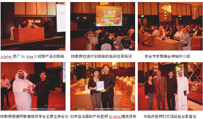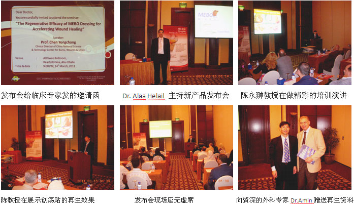 二、新產(chǎn)品發(fā)布與應(yīng)用培訓(xùn)會(huì)敲開了新市場(chǎng)之門。2011年3月13日和14日,美寶創(chuàng)瘍貼新產(chǎn)品發(fā)布與應(yīng)用培訓(xùn)會(huì)分別在迪拜和阿布扎比成功舉辦。來自各政府醫(yī)院、私營(yíng)醫(yī)院、診所的燒傷、整形、普外、婦產(chǎn)、骨科、急診等數(shù)十家醫(yī)院的臨床多學(xué)科的120多名醫(yī)師、護(hù)士參加了美寶創(chuàng)瘍貼的發(fā)布培訓(xùn)會(huì)(迪拜70多名,阿布扎比40多名),陳永翀教授應(yīng)邀以“The Regenerative efficacy of MEBO Dressing for accelerating wound healing”(美寶創(chuàng)瘍貼再生愈合效果)為題,向參會(huì)的臨床專家們講解了創(chuàng)瘍貼的再生愈合創(chuàng)面的機(jī)理、臨床使用方法和令人嘆服的治療效果,演講很受大家的歡迎,大家也為找到一種有效而且方便使用的新產(chǎn)品而感到興奮和激動(dòng)。這次的發(fā)布會(huì)舉辦得非常成功,反響熱烈,達(dá)到和超出了預(yù)期的效果。