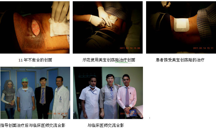 三、理論與實(shí)踐結(jié)合、培訓(xùn)與示范結(jié)合,新產(chǎn)品直接到達(dá)市場(chǎng)終端。在新產(chǎn)品美寶創(chuàng)瘍貼的推廣發(fā)布期間,陳永翀教授先后應(yīng)邀到迪拜最大的政府醫(yī)院------迪拜醫(yī)學(xué)院附屬RASHID醫(yī)院的Wound Care Center(創(chuàng)面治療中心)、迪拜婦兒醫(yī)院小兒外科、阿布扎比的Al AhlinHospital、Lipe Line Clinic向個(gè)醫(yī)院的主任、醫(yī)師和護(hù)士們介紹了美寶創(chuàng)瘍貼的再生醫(yī)學(xué)原理,分別在2例長(zhǎng)期不愈合的褥瘡創(chuàng)面、1例小兒燒傷創(chuàng)面和1例11年長(zhǎng)期不愈合的創(chuàng)面上講解和示范了美寶創(chuàng)瘍貼的使用方法,使大家更直觀地掌握了正確的使用方法。