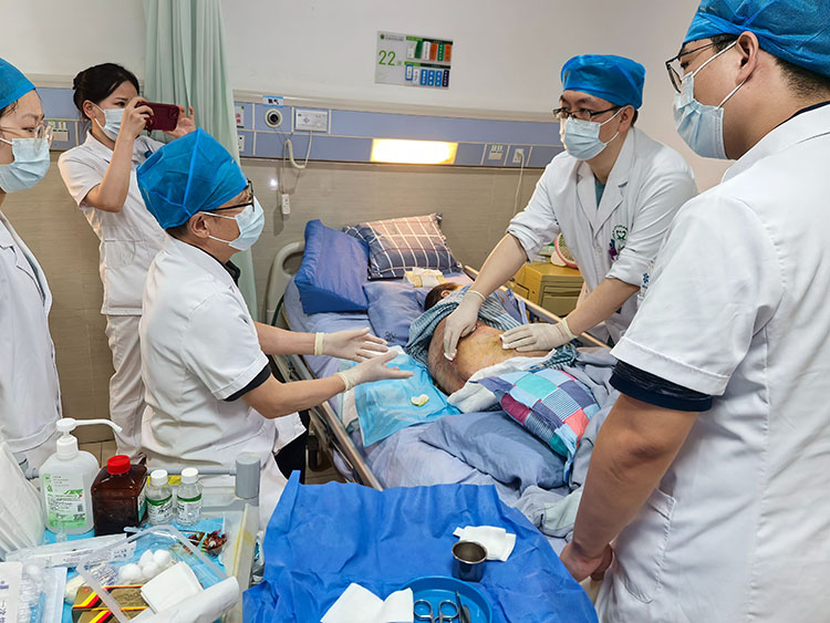 2024年6月5日,中國(guó)中西醫(yī)結(jié)合學(xué)會(huì)燒傷專(zhuān)業(yè)委員會(huì)常務(wù)委員、《中國(guó)燒傷創(chuàng)瘍雜志》副總編輯王洪生,應(yīng)邀到中山市人民醫(yī)院黃圃院區(qū)對(duì)一例難愈性創(chuàng)面的患者進(jìn)行會(huì)診,并親自清創(chuàng)及換藥,示范再生醫(yī)療技術(shù)在臨床的規(guī)范化應(yīng)用,受到醫(yī)患雙方一致好評(píng)!