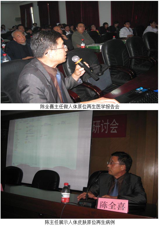 2011年9月26日下午2點(diǎn)整,講座在該院外科學(xué)術(shù)廳舉行,該醫(yī)院外科主任,省中西醫(yī)結(jié)合學(xué)會(huì)、燒傷專(zhuān)業(yè)委員會(huì)副主任委員王秉真、漯河市中心醫(yī)院外科主任錢(qián)紅軍主持了學(xué)術(shù)講座,在學(xué)術(shù)講座中,陳主任首先向參會(huì)全體醫(yī)護(hù)人員介紹了我國(guó)著名生命科學(xué)家徐榮祥教授。然后結(jié)合大量的臨床病例圖片,主要針對(duì)不同程度的燒傷后期創(chuàng)面及各類(lèi)難愈性創(chuàng)傷、潰瘍、壓瘡、疤痕等疾病的預(yù)防及治療方法和注意事項(xiàng)。對(duì)創(chuàng)傷性骨病“慢性骨髓炎”的臨床治療也進(jìn)行了認(rèn)真細(xì)致地講解,并解答了醫(yī)師在處理骨髓炎中遇到的疑難問(wèn)題;向?qū)W員們講解微粒皮種植術(shù)在創(chuàng)傷、燒傷、潰瘍創(chuàng)面與濕潤(rùn)燒傷膏聯(lián)合治療的病例,展示了種植皮漿的圖像資料,認(rèn)真解答了醫(yī)護(hù)人員提出的問(wèn)題。