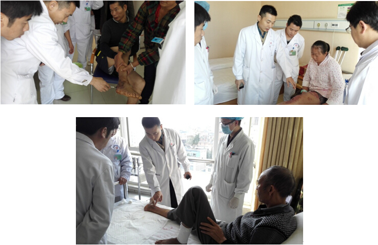 培訓(xùn)結(jié)束后王主任與各科醫(yī)生到科室為病人進(jìn)行會(huì)診,并針對(duì)各病例進(jìn)行病情分析指導(dǎo)治療。
