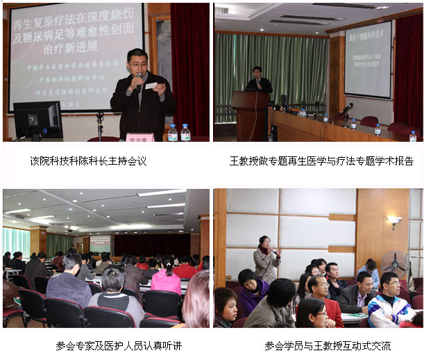 會(huì)議在下午兩點(diǎn)半開(kāi)始,在學(xué)術(shù)講座中,王教授首先向與會(huì)醫(yī)護(hù)人員介紹了我國(guó)著名生命科學(xué)家、醫(yī)學(xué)家徐榮祥教授在人體再生復(fù)原科學(xué)領(lǐng)域取得的實(shí)驗(yàn)及臨床研究最新進(jìn)展,在2010年年底公布的“人體生命延續(xù)之謎(二)——線粒體主導(dǎo)日常生命”,破解了“精、氣、神、力”旺盛與人體啟動(dòng)了再生生命程序有關(guān),與細(xì)胞內(nèi)各主要細(xì)胞器功能的發(fā)揮有關(guān),并進(jìn)一步證實(shí)了一個(gè)生命體可以同時(shí)具有“基本生命”和“再生生命”等,然后結(jié)合了大量的臨床病例圖片,主要針對(duì)不同深度的燒傷創(chuàng)面及各類(lèi)難愈性創(chuàng)傷、潰瘍創(chuàng)面的規(guī)范化處理方法與技巧、注意事項(xiàng)等進(jìn)行了細(xì)致地講解,并向?qū)W員展示了糖尿病足創(chuàng)面規(guī)范處理錄像資料,再生醫(yī)療技術(shù)神奇的療效博得了在場(chǎng)醫(yī)務(wù)人員的熱烈掌聲。會(huì)議到五點(diǎn)半鐘才結(jié)束,會(huì)后王主任還就學(xué)員們提出的問(wèn)題一一做了詳細(xì)地解答。會(huì)后各科領(lǐng)導(dǎo)表示將在臨床全面地推廣再生醫(yī)療技術(shù),造福更多患者。