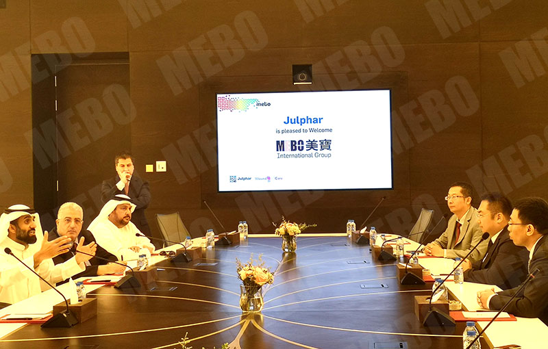 隨后,Julphar董事局主席Sheikh Saqer率副主席及高管團隊與徐鵬主席率領(lǐng)的美寶團隊就美寶集團與Julphar的商務(wù)合作開展了深入的會談,回顧了2009年以來雙方在商業(yè)合作領(lǐng)域取得成就,剖析了近年來市場發(fā)展遇到的問題及挑戰(zhàn),會談達成多項共識。Sheikh Saqer向徐鵬介紹了3名新任董事會成員,他指出過去兩年多來Julphar 的發(fā)展遇到一系列問題,包括與美寶集團及其高層之間的交流溝通,并提出了一系列的改進措施與建議。他強調(diào)未來必須建立董事局級別定期溝通渠道,保證雙方合作項目的順利執(zhí)行,也對未來雙方深化合作、再次騰飛充滿了信心。徐鵬提出精誠合作、互信共贏是雙方30年來緊密合作的基礎(chǔ),雙方應在醫(yī)藥業(yè)務(wù)加深加強合作外,還要加大在國際交流、國際高端學術(shù)活動、社會企業(yè)責任等領(lǐng)域的深度合作,共同打造美寶-Julphar品牌。同時也特別指出雙方需要重視并探尋美寶技術(shù)產(chǎn)品在中東及非洲地區(qū)罕見?。ㄈ缦忍煨云つw缺損)的應用契機。