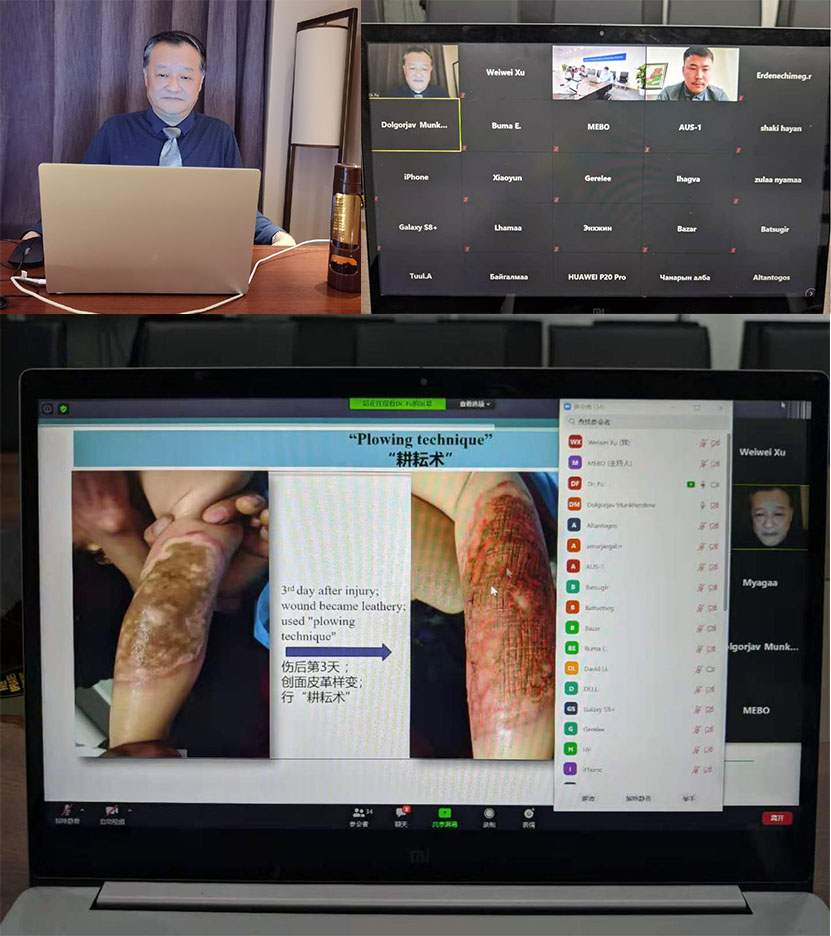 首先美寶集團(tuán)蒙古國市場經(jīng)理連線會場對本次活動內(nèi)容進(jìn)行了說明,隨后蒙古國市場經(jīng)理Bumaa宣布培訓(xùn)活動開始。由于本次聽取授課的人員大部分為第一次接觸再生醫(yī)學(xué)療法,因此付子俊教授對再生醫(yī)學(xué)的機(jī)理、治療方法等基礎(chǔ)理論進(jìn)行了深入淺出的講解。在病例分享環(huán)節(jié),付子俊教授充分展示了再生醫(yī)學(xué)針對燒燙傷、糖尿病足潰瘍、壓瘡、婦科病癥和斷指等臨床治療方法及治療效果,并著重分享了微粒皮種植配合再生醫(yī)學(xué)的應(yīng)用方法,獲得參會人員一致好評。