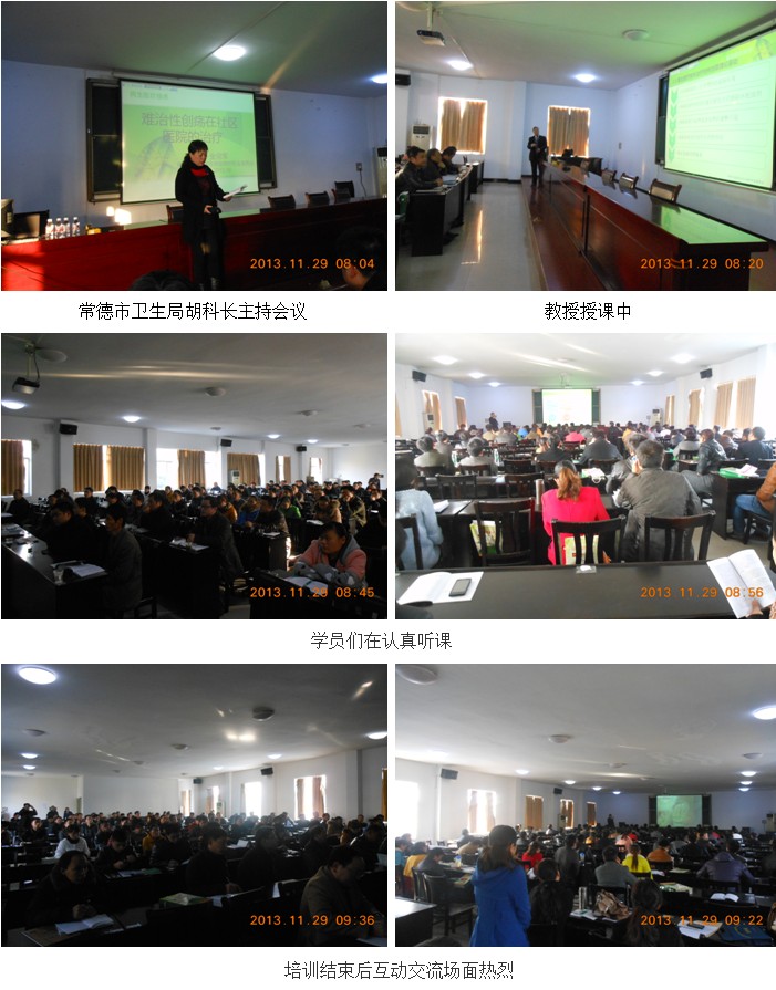 2013年11月29日中國中西醫(yī)結合學會燒傷專業(yè)委員會常委、北京燒傷創(chuàng)瘍研究所副所長、《中國燒傷創(chuàng)瘍雜志》常委編委金黨軍教授,應邀來到美麗的常德市。常德市衛(wèi)生局組織了常德市區(qū)、臨澧縣、漢壽縣、津市、石門縣、桃源縣、澧縣各鄉(xiāng)鎮(zhèn)衛(wèi)生院及社區(qū)醫(yī)院骨干醫(yī)生進行適用醫(yī)療技術培訓班!參加培訓的單位及人員達到200人!金黨軍教授在常德市警官培訓學校的會議室對參會的200人進行了皮膚原位再生醫(yī)療技術在治療難愈性創(chuàng)面領域的培訓。金教授講到 “人體再生復原科學”是中國生命科學家徐榮祥教授創(chuàng)立的,而皮膚原位再生醫(yī)療技術在臨床已成為一項成熟的國際性技術,用于治療各類燒傷創(chuàng)面、皮膚潰瘍創(chuàng)面、糖尿病壞死足創(chuàng)面、周圍血管病創(chuàng)面、動脈閉塞癥、血管狹隘性的誘發(fā)的創(chuàng)面、各種難愈合性創(chuàng)面、斷指創(chuàng)面、擠壓創(chuàng)面和外傷感染性創(chuàng)面、新鮮創(chuàng)傷創(chuàng)面等。金黨軍教授深入淺出的理論演講,大量真實病例圖片的療效展示取得了很好的現(xiàn)場效果,聽課的醫(yī)師被人體皮膚原位再生醫(yī)療技術所震驚。