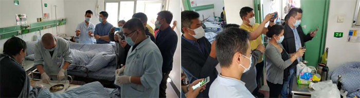 菲專家在科室專家指導(dǎo)下進(jìn)行實(shí)際換藥操作