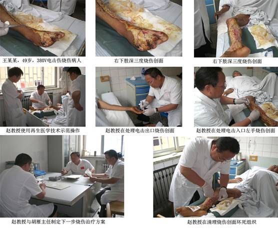 簡訊2:8月9日,趙瑞慶教授指導(dǎo)山東牟平人民醫(yī)院外科醫(yī)務(wù)人員使用再生醫(yī)學(xué)技術(shù)治療380伏高壓電擊傷造成右手、左下肢、會陰部Ⅲ度燒傷患者。