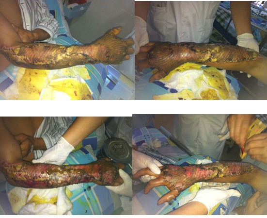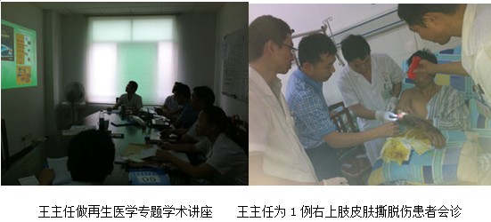 2012年9月26日下午三點(diǎn),應(yīng)該院外科文振偉主任的邀請(qǐng),中國(guó)中西醫(yī)結(jié)合學(xué)會(huì)燒傷專業(yè)委員會(huì)常委兼秘書、《中國(guó)燒傷創(chuàng)瘍雜志》副總編輯、北京美寶燒傷創(chuàng)瘍研究所副所長(zhǎng)、第二臨床研究部主任王洪生研究員來到該院到該科作學(xué)術(shù)和技術(shù)上的交流和指導(dǎo),參會(huì)人員為該科室全體醫(yī)護(hù)人員共10余人。會(huì)議在該院外科室舉行, 王主任通過大量典型的臨床病例圖片及錄像資料詳細(xì)的介紹了再生醫(yī)療技術(shù)對(duì)深度燒傷及難愈性創(chuàng)面作用機(jī)理、再生復(fù)原療法對(duì)各種不同深度燒傷及各種難愈性創(chuàng)面治療方法和規(guī)范操作時(shí)的注意事項(xiàng)等,在授課過程之中大家認(rèn)真聽講,并在授課后大家對(duì)王主任講課內(nèi)容進(jìn)行了深入的探討,王主任根據(jù)大家提出的問題有針對(duì)性的進(jìn)行了講解,會(huì)后王主任對(duì)該科一例右上肢撕脫傷病人進(jìn)行會(huì)診,王主任還親自為病人換藥,進(jìn)行了現(xiàn)場(chǎng)的生動(dòng)有效的臨床指導(dǎo)示范。