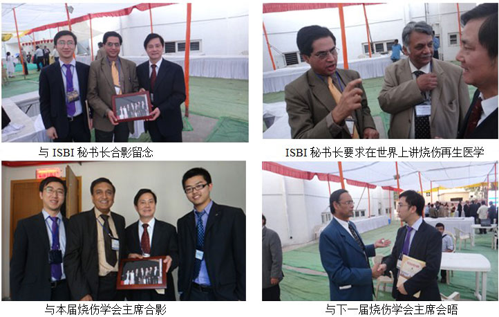 隨后,在張印的帶領(lǐng)下,美寶團隊將的具有特殊意義的禮物-贈送給了ISBI秘書長Rajeev Ahuja教授和大會主席Umesh Sha教授,他們被這份友誼深深的感動了。ISBI秘書長激動的說:“你們今天的演講很精彩,但是你們講力度太小了。讓我講,這項技術(shù)在全世界都會火起來的?!焙淌谡f:“這項技術(shù)是造福全人類的技術(shù),希望ISBI組織能夠大力推廣,為全人類燒傷患者造福?!庇《葻齻麑W(xué)會主席Umesh Shah 教授緊握著美寶團隊成員的手說:“你們太細(xì)心,太讓我感動了, 我有機會一定去北京拜訪你們,并向你們學(xué)習(xí)” 期間,下一屆印度燒傷學(xué)會主席亞洲最大燒傷中心Safdarjang 燒傷中心主任R.P.Narayan教授前來對胡教授的演講給予高度贊揚并邀請美寶團隊2014年來新德里參加22屆印度國家燒傷年會,并將全力配合美寶團隊的工作。