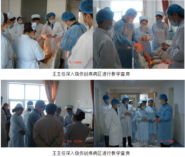 2013年4月15日上午9時,王主任應(yīng)邀再次來到該醫(yī)院燒傷創(chuàng)瘍手外科病房對在該科室住院的燒傷創(chuàng)瘍患者進(jìn)行教學(xué)查房,并應(yīng)邀親自為1例雙足及小腿深度燒傷患者進(jìn)行清創(chuàng)換藥,向該科室的醫(yī)護(hù)人員展示再生醫(yī)療技術(shù)規(guī)范的創(chuàng)面清創(chuàng)換藥技術(shù),帶教結(jié)束后,王主任在該科室會議室又對該科室的醫(yī)護(hù)人員進(jìn)行再生復(fù)原療法在特重度燒傷系統(tǒng)治療要點進(jìn)行技術(shù)培訓(xùn)和交流。通過此次培訓(xùn),該科室的全部醫(yī)護(hù)人員基本掌握了再生醫(yī)療技術(shù)的規(guī)范化操作,對該科室的發(fā)展起到了重要作用。
