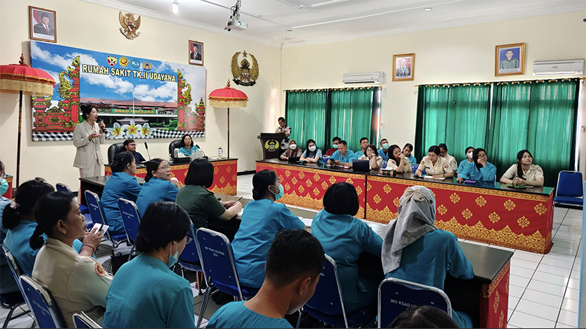 5月20日,代表團(tuán)抵達(dá)登巴薩,在Udayana Army公立醫(yī)院舉辦了首場技術(shù)交流會。來自外科、急診科及護(hù)理部門的醫(yī)護(hù)人員積極參與。會議伊始,美容整形外科的Widya教授就再生醫(yī)療技術(shù)在創(chuàng)面治療各階段的臨床應(yīng)用進(jìn)行了詳細(xì)講解,并結(jié)合典型病例進(jìn)行了分析。隨后,美寶國際技術(shù)部代表對再生醫(yī)療技術(shù)的核心機(jī)制及臨床優(yōu)勢進(jìn)行了深入解讀,尤其在加速愈合、減少瘢痕和降低感染率方面的顯著效果,引起在場人員廣泛關(guān)注。當(dāng)日下午,代表團(tuán)還參訪了Sanglah教學(xué)醫(yī)院,實地考察了該院燒傷科的臨床環(huán)境,并與一線醫(yī)護(hù)人員圍繞再生醫(yī)療技術(shù)的本地化應(yīng)用進(jìn)行了深入交流。