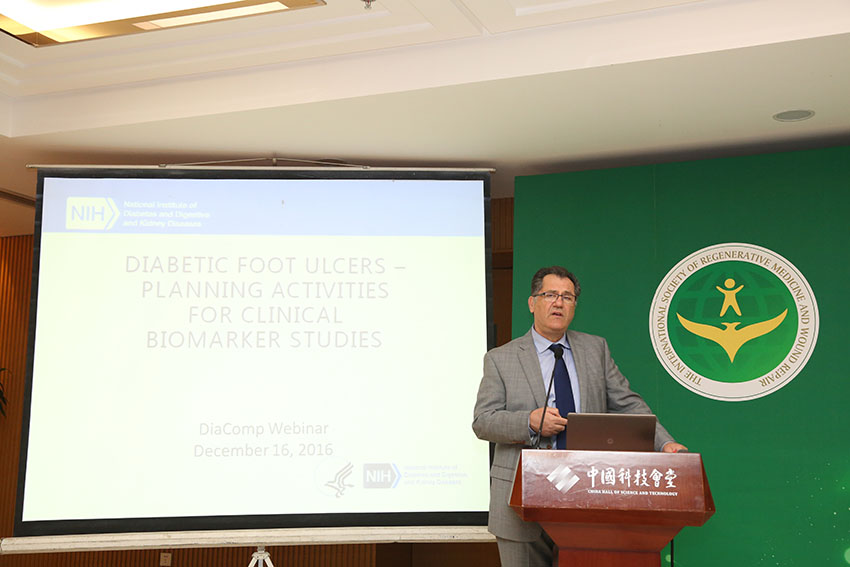 哈佛醫(yī)學(xué)院教授、BIDMC徐榮祥醫(yī)學(xué)博士再生治療學(xué)外科教授、BIDMC徐榮祥再生治療中心主任、BIDMC徐榮祥再生治療中心咨詢委員會(huì)和科學(xué)咨詢委員會(huì)主席阿里斯蒂迪斯·維維斯博士則從糖尿病足潰瘍的形成機(jī)制和可能的新治療方案展開(kāi),以臨床生物標(biāo)記物研究規(guī)劃活動(dòng)為例,用大量統(tǒng)計(jì)數(shù)據(jù)和圖表闡釋了在臨床試驗(yàn)中的潰瘍以及愈合率。