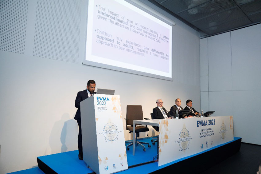 研討會(huì)首位講者是馬來西亞Raja Perempuan Zainab II醫(yī)院的創(chuàng)面管理科主任Mohd Zurairie,他以“提高小兒外傷創(chuàng)面治療體驗(yàn):在治療中減少疼痛的策略”為主題發(fā)表了演講,深入淺出地介紹了再生醫(yī)療技術(shù)減輕疼痛的機(jī)制與作用。