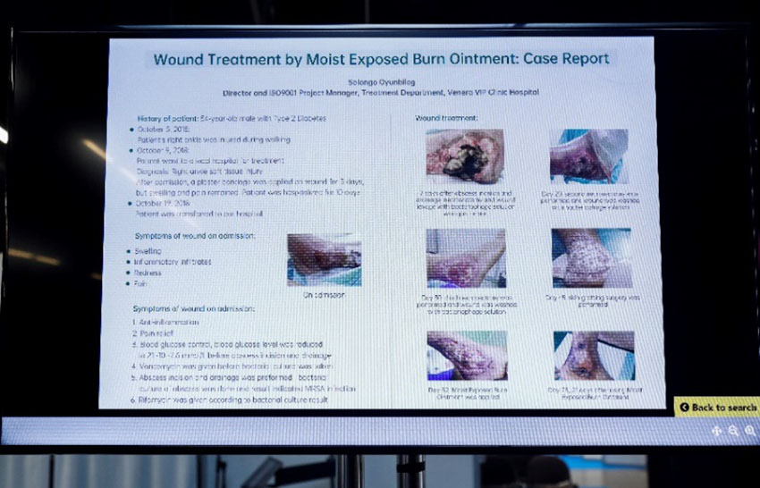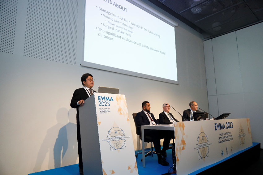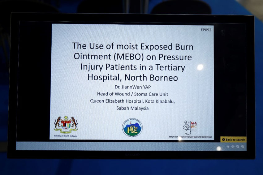 除演講外,在海報(bào)展示中,來自蒙古Venera VIP Clinic醫(yī)院的Solongo Oyunbileg,馬來西亞Raja Perempuan Zainab II醫(yī)院的Mohd Zurairie,以及馬來西亞皇后伊麗莎白醫(yī)院的Jiann Wen Yap,分別提交了題為“利用濕潤(rùn)燒傷膏治療傷口:1例病例報(bào)告”、“聯(lián)合應(yīng)用濕潤(rùn)燒傷膏與硅膠非粘性泡沫敷料治療小兒下肢遠(yuǎn)端創(chuàng)傷” 、“使用濕潤(rùn)燒傷膏治療壓力性損傷”的電子海報(bào), 深受現(xiàn)場(chǎng)參會(huì)者的好評(píng)。