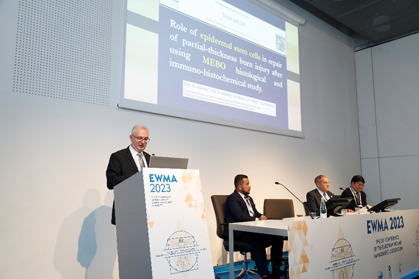5月4日下午,在大會(huì)主題演講中,埃及亞歷山大大學(xué)外科教授Mahmoud Sakr以“再生醫(yī)療技術(shù)在開放性傷口治療中的療效評(píng)估”為題,分享了應(yīng)用再生醫(yī)學(xué)技術(shù)治療各類開放性創(chuàng)面的寶貴臨床經(jīng)驗(yàn)。