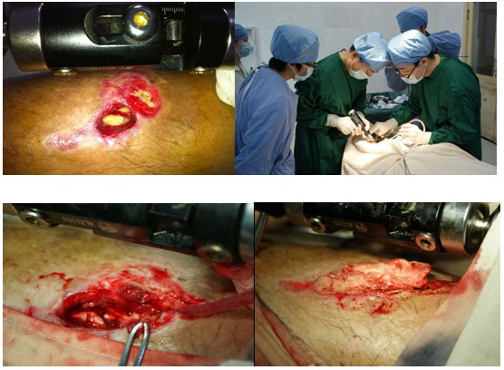 2012年5月3日下午中國中西醫(yī)結(jié)合學(xué)會燒傷專業(yè)委員會常委兼秘書、《中國燒傷創(chuàng)瘍雜志》副總編輯、北京美寶燒傷創(chuàng)瘍研究所副所長、臨床部主任王洪生研究員應(yīng)長樂市中醫(yī)院骨科主任林浩的邀請到該院給該病人做一次創(chuàng)面的實(shí)際處理。下午3時,手術(shù)準(zhǔn)時開始,該院骨科的主要骨干力量鄭醫(yī)生配合王主任手術(shù),其他人員有5名臨床醫(yī)生參觀的王主任做的手術(shù)。手術(shù)過程中王主任認(rèn)真仔細(xì)的處理病人的創(chuàng)面,并對該類病人此類創(chuàng)面如何處理做了詳細(xì)的講解和交流,下午4點(diǎn)30分手術(shù)結(jié)束。此次王主任給病人做手術(shù)的全過程,就是一次生動的講課,不是平時的講課,卻勝似講課千倍萬倍,該院骨科的主要骨干醫(yī)生全部參觀的手術(shù)全過程,這比任何一次講課取得的效果都要好。手術(shù)后,王主任和該院骨科醫(yī)生進(jìn)行了充分的交流,并對后期的護(hù)理提出了一些要求。