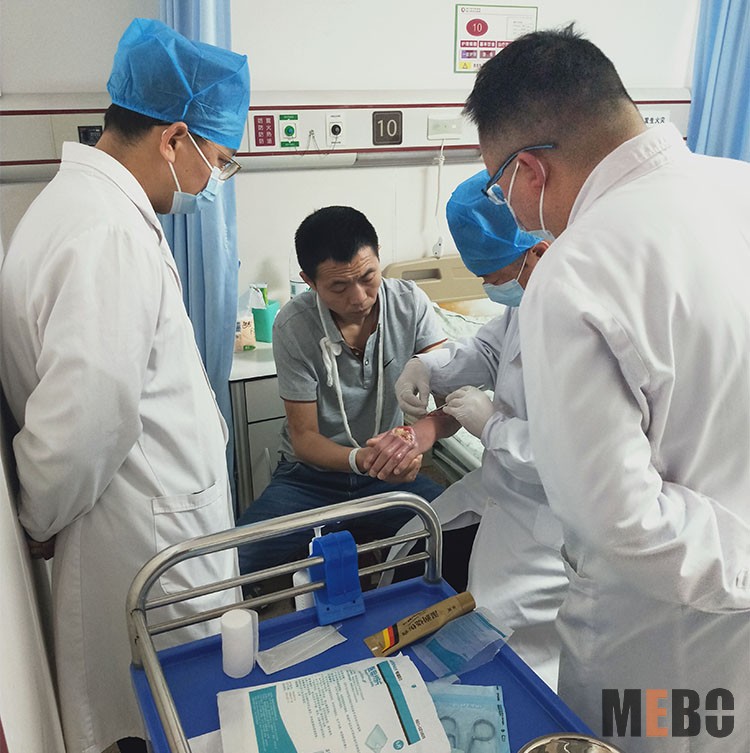 2021年4月12日,中國中西醫(yī)結(jié)合學(xué)會燒傷專業(yè)委員會委員張強教授應(yīng)邀到荊門市中醫(yī)醫(yī)院燒傷整形科會診多例燒燙傷潰瘍病人,應(yīng)用再生醫(yī)療技術(shù)進行了規(guī)范換藥示范,并就換藥過程中容易忽視的細節(jié)操作進行了講解溝通,為以后的臨床診療起到了重要作用。
