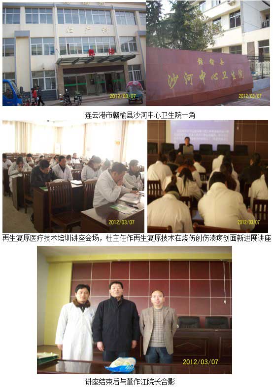 2012年3月7日下午14:00應沙河鎮(zhèn)醫(yī)院董作江院長兼外科主任的邀請,杜主任一行為沙河醫(yī)院舉辦了“再生復原技術在燒傷創(chuàng)傷潰瘍創(chuàng)面應用新進展”技術講座。