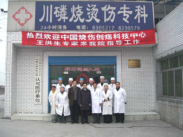 什邡市位于成都北面。距成都約70公里。什邡市的雙盛區(qū)是一個(gè)以化工工業(yè)為主的開發(fā)區(qū)。這里的“川磷燒燙傷??漆t(yī)院”是一家從企業(yè)的衛(wèi)生所轉(zhuǎn)制發(fā)展起來的??漆t(yī)院。多年來,一直使用傳統(tǒng)療法治療燒傷。去年年底,德陽市人民醫(yī)院燒傷科李永忠主任在與“川磷燒傷??漆t(yī)院”程德躍院長的業(yè)務(wù)交流中向他推薦濕性醫(yī)療技術(shù)和美寶濕潤燒傷膏。試用后頓覺療效不凡,擴(kuò)大使用后,迫切需要規(guī)范的臨床操作技術(shù)培訓(xùn)和指導(dǎo)。經(jīng)過區(qū)域人員多方面努力和精心準(zhǔn)備,今年3月6日,中國燒傷創(chuàng)瘍科技中心臨床部王洪生主任前往什邡市對該院醫(yī)護(hù)人員進(jìn)行了培訓(xùn)和指導(dǎo),傳授燒傷濕性醫(yī)療技術(shù)(即皮膚再生醫(yī)療技術(shù))操作規(guī)范及其配用藥品濕潤燒傷膏的使用方法。