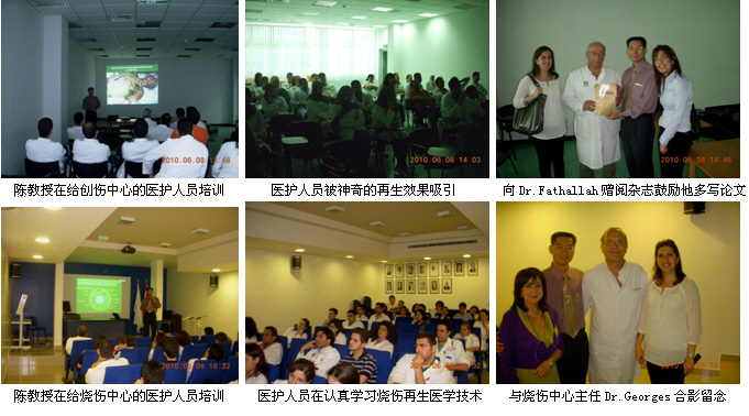 在會(huì)議期間,陳教授還應(yīng)邀到黎巴嫩最大的燒傷中心(黎巴嫩大學(xué)醫(yī)院燒傷中心)和創(chuàng)傷中心(美國(guó)大學(xué)貝魯特醫(yī)院創(chuàng)傷中心)給這2個(gè)中心的醫(yī)護(hù)人員進(jìn)行了燒傷再生醫(yī)學(xué)臨床技術(shù)的規(guī)范培訓(xùn),大家聽完課后都覺得耳目一新,了解和學(xué)習(xí)到了更多的再生醫(yī)學(xué)理論和臨床規(guī)范,進(jìn)一步了解和知道燒傷再生醫(yī)學(xué)可以應(yīng)用于大面積深度燒傷和各種嚴(yán)重的創(chuàng)傷,并具有原位再生復(fù)原皮膚的神奇效果,大家對(duì)以后的臨床應(yīng)用充滿了信心。